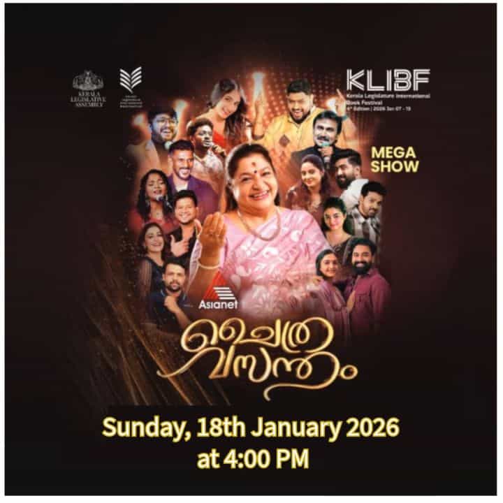 The highly anticipated Chaithra Vasantham Mega Show is set to air on Asianet on Sunday, January 18, 2026, at 4:00 PM. For those who may miss the initial broadcast, a repeat telecast will be available later that evening at 10:30 PM. This spectacular event is part of the Kerala Legislature International Book Festival (KLIBF), which runs from January 7 to 13, 2026. The show promises to be a highlight of the festival, showcasing the rich cultural tapestry of Kerala and celebrating the power of literature and the arts.