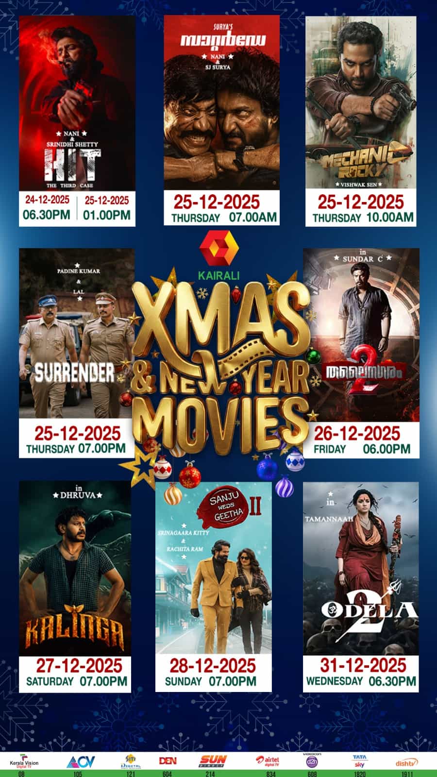 Christmas 2025 Week Full Movie Listing of Malayalam Channel Kairali TV