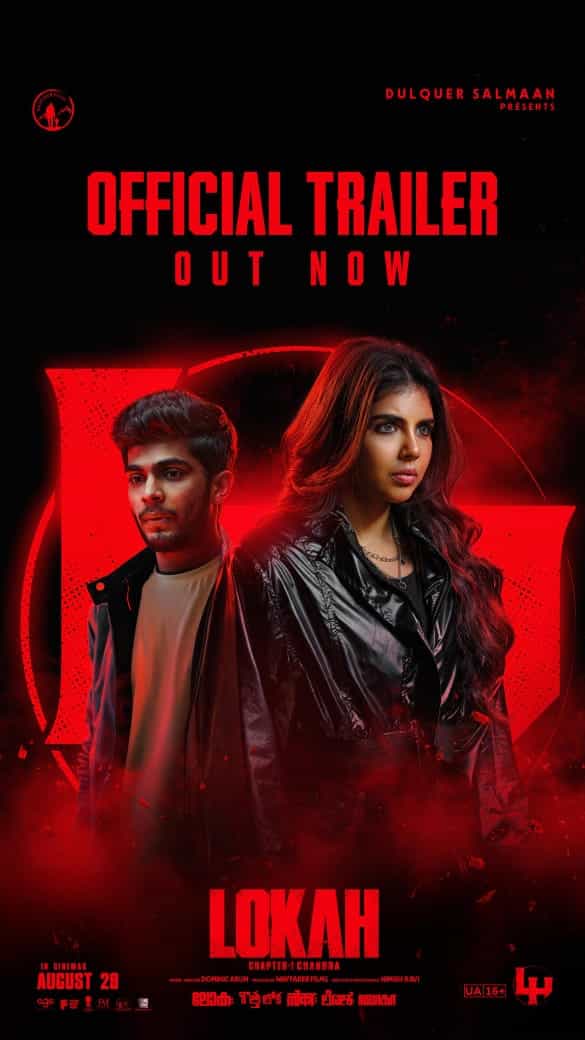 The trailer of Dulquer Salmaan’s seventh film, “Loka – Chapter One: Chandra“, produced by Wayfarer Films, is out. The trailer was launched at the grand pre-release event of the film. The film will be released globally on August 28 as an Onam release. Kalyani Priyadarshan and Naslen play the lead roles in the film. Made on a huge budget, ‘Lokah’ is written and directed by Dominic Arun. “Chandra” is the first film in a superhero cinematic universe called “Lokah”. The film, which completed censoring a few days ago, has received a UA certificate.