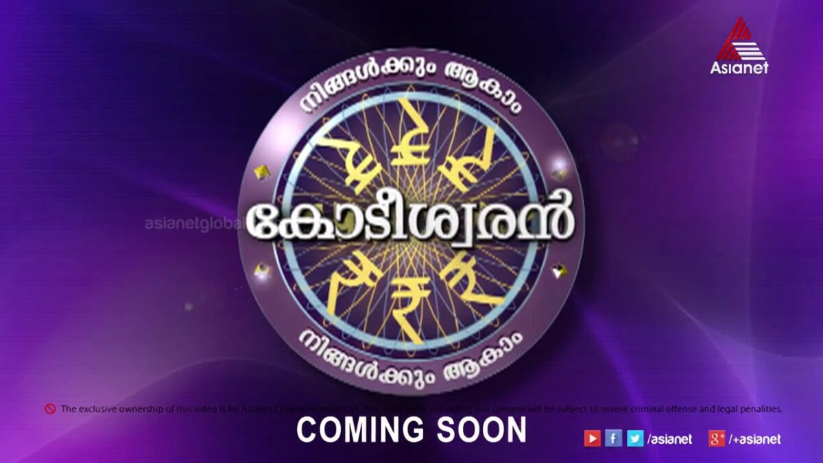 Asianet announced the date of questions for the most awaited game show Ningalkkum Aakam Kodeeshwaran. Season 3 of Malayalam Kodeeshwaran Will Start Very Soon on Asianet. To Enter the game show you need to answer to the questions. First Question of Ningalkkum Aakam Kodeeshwaran Will Ask on 30th October 2014 at 6.30 P.M. Ningalkkum Aakam Kodeeshwaran Aka NAK is the Malayalam version of the Popular game show Who Wants to Be a Millionaire?.