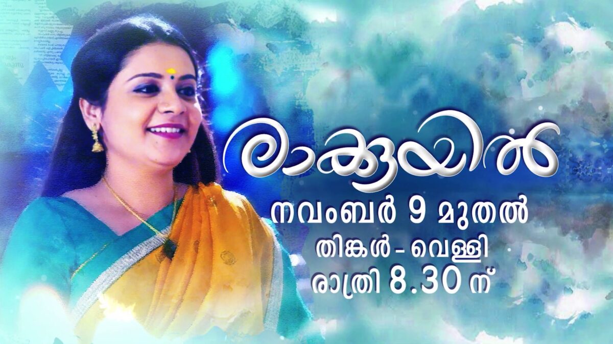 Raakkuyil serial launch date and telecast time announced by Mazhavil Manorama, Rakkuyil Scheduled to Start on 9th November Every Monday to Friday at 8:30 P.M. Archana Nair and Hemanth are doing main roles, Show directed by Manu Sudhakaran. Raakkuyil mazhavil serial based on a novel published in Malayalam Manorama Weekly with the Same Title, written by Murali Nellanadu.
