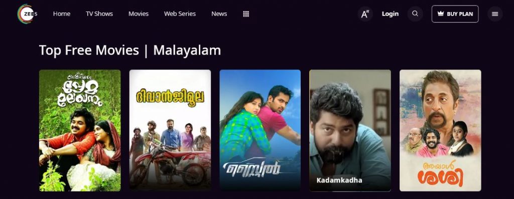 Basheerinte Premalekhanam , Diwanjimoola Grand Prix , Style , Kadamkadha , Ayaal Sassi , Oru Pazhaya Bomb Kadha , Ente Peru Surya Ente Veedu India , Minnaminungu, Sarvopari Pallakaran, Kallayi F.M , Nithyaharitha Nayakan and Neeli are the Free Films at ZEE5 App.